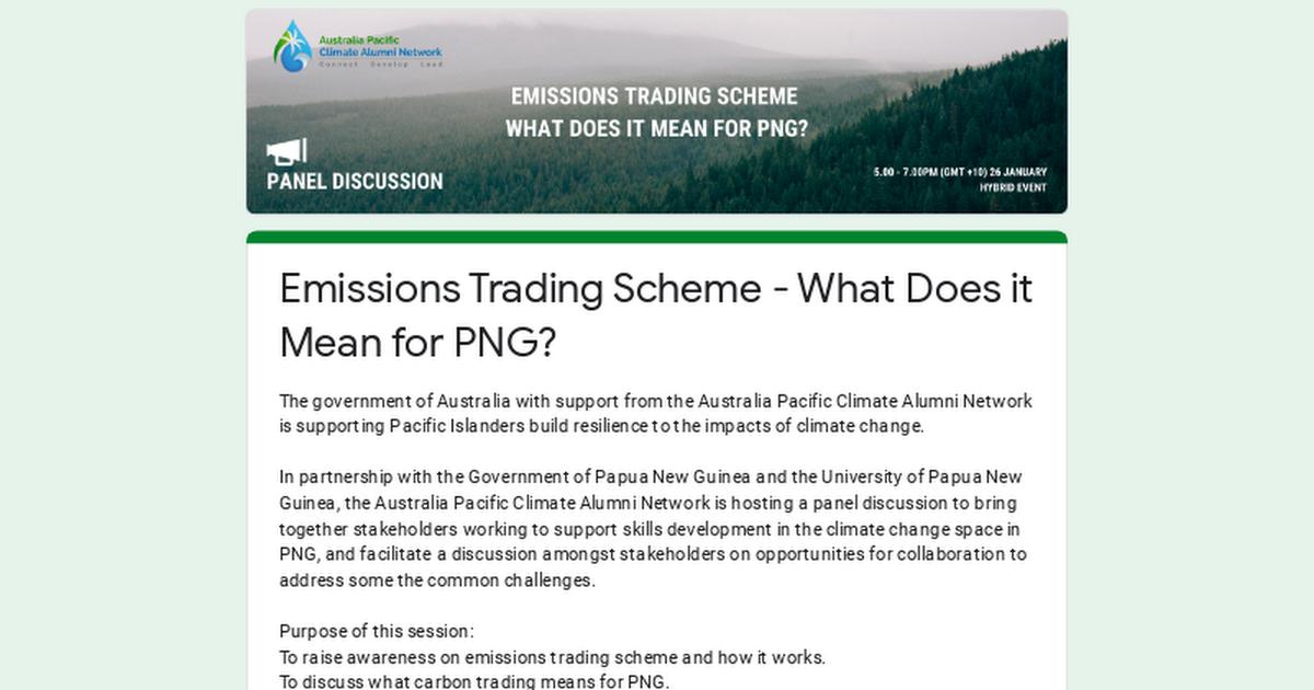 Registration for EMISSIONS TRADING SCHEME: WHAT DOES IT MEAN FOR PNG?